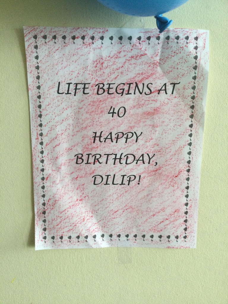 My husband has had a rough couple of years – I’ll bore you with the details in another post – so I kept teasing him “Life begins at 40”, something my father always used to say since the beginning of this year. To celebrate this new life and to tease him a little more, I got baby shower/newborn balloons for him that said “It’s a boy.” I have to tell you that half the people I showed this to didn’t get it, but my husband had a good laugh, so it was worth it.